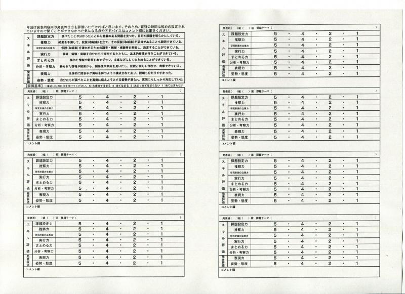 ◎外部審査者のシート(生徒のシートよりスキル評価の項目を細かく見ています)