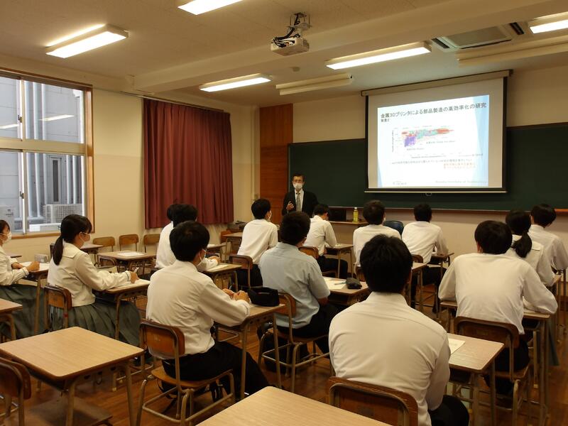 大学での研究活動の紹介を交えながら「機械と情報の世界動向」、「アクティブラーニングの意義」、「新しい世界を生み出す"3Dプリンター"の魅力」についてお話をいただきました。