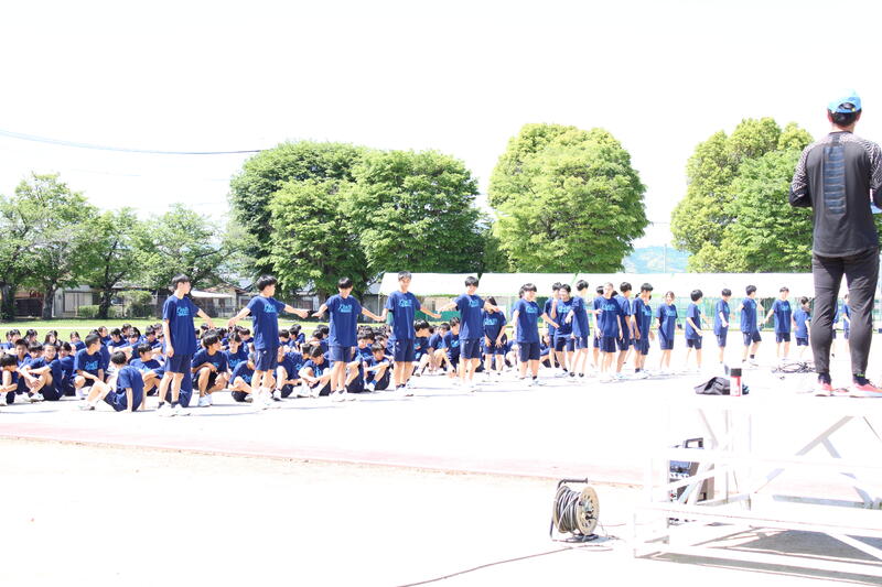 見どころの全校生徒が参加するマスゲームの人文字の整列にも気合を入れて取り組んでいます!