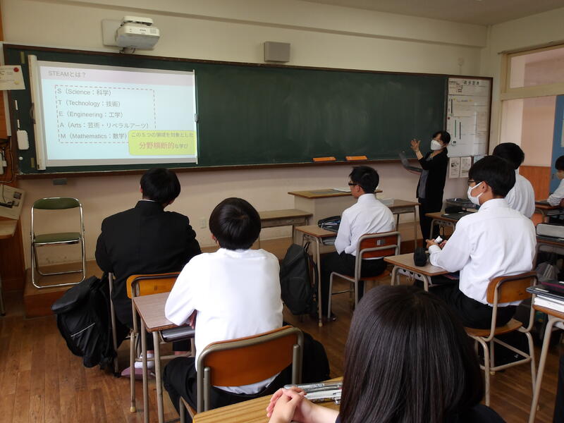 5月12日(金)、鹿本STEAM-CⅡ(地歴公民×生物×化学×情報)の授業がスタートしました。1年生の3~5組の生徒たちが「重金属がもたらす植物への影響」について、学びを深めていきます。