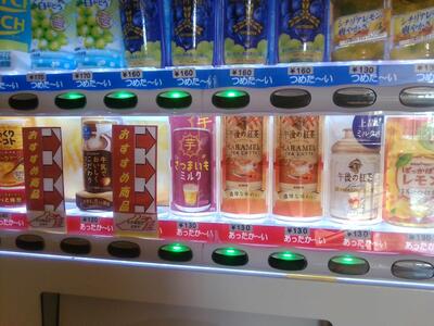 自動販売機には、温かい飲み物もでてきてます!私が気になっているのは「さつまいもミルク」です!