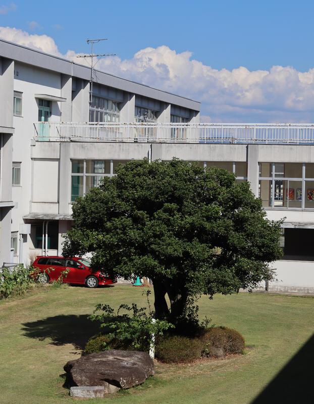 この下の写真は夏に撮った写真です。鹿本高校の中庭にあるブロッコリーに見える木です。皆さんもぜひ中庭の木がブロッコリーに見えるか確かめてみてください!!