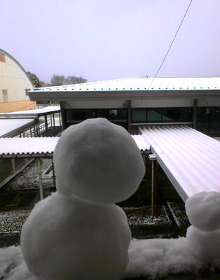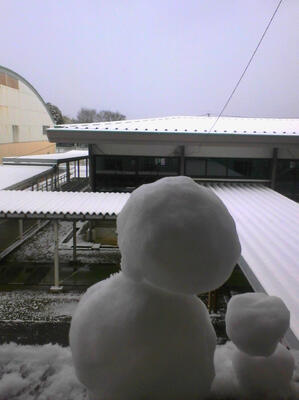 先週雪が降った時に撮っていた雪景色。雪がふわふわしていたからか、雪だるまが学校内にいくつかありました。