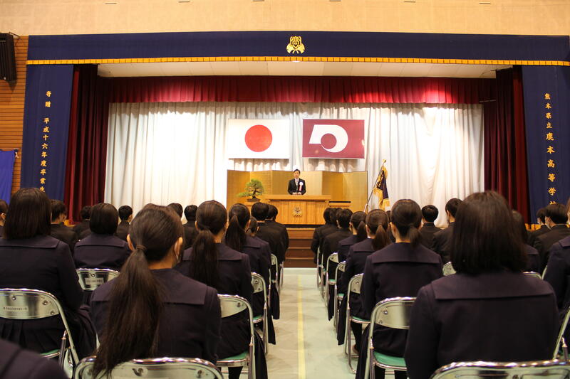 「皆さんや皆さんの周囲の方々、もっといえば、全ての人々が幸せに、平和に暮らせる社会を作り上げるために、皆さんが鹿本高校で培った力を存分に発揮してください。」