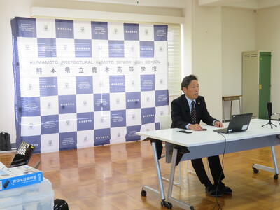 始業式では、石村校長先生からNHKで放送される「魔改造の夜」を題材に、本校の令和7年度教育スローガン「探究する生徒の育成~学びを深める自分だけの『問い』を持つ~」と重ねて、鹿本高校生に求められている学びや姿勢についてお話をいただきました。