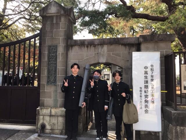 令和8年3月20日(土)に、本校2年生3名が、九州工業大学主催の高校生課題研究発表会に参加し、ポスター発表をしました。