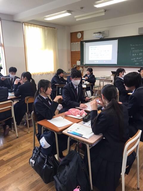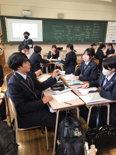 2月26日(木)、2年3組の「英語コミュニケーションⅡ」の時間に、テーマクロス授業が行われました。