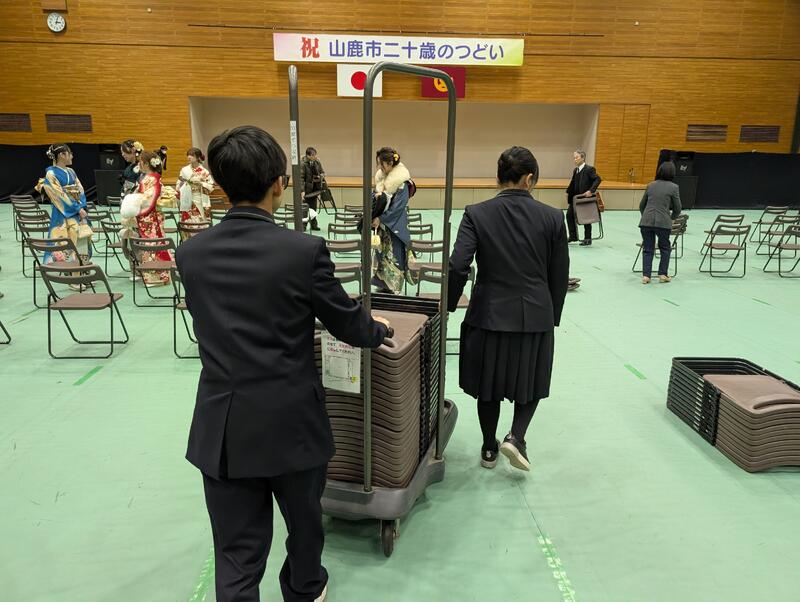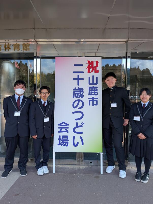 生徒会執行部4名が山鹿市の「二十歳のつどい」でボランティア活動を行いました。