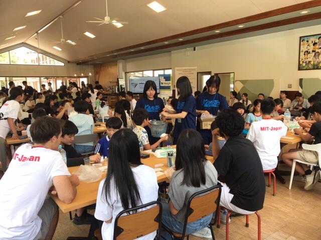 別々のグループで竹炭と温泉水を使ったセッケン作りをしています。↓
