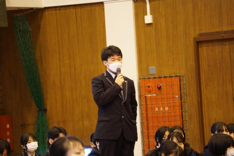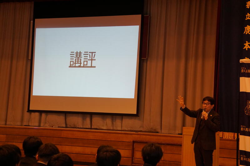 崇城大学生命生物生命学部の長濱一弘先生より最後に講評を頂き、「今自分たちは息を吸って何を取り込んでいるか。」という問いから探究の楽しさや臨んでいく姿勢など、これからに向けた励ましの言葉をいただきました。2年生は新3年生の夏に向けて、1年生は来年度の発表会に向けて、ますます活発に探究活動を行う姿勢を磨いていってほしいと思います。