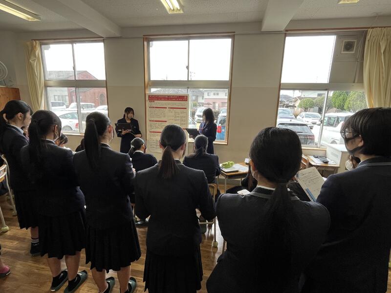 3月12日(木)、2年4組の「英語コミュニケーションⅡ」の時間に、テーマクロス授業が行われました。