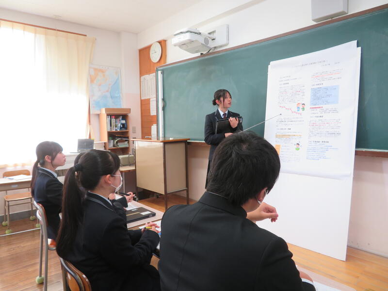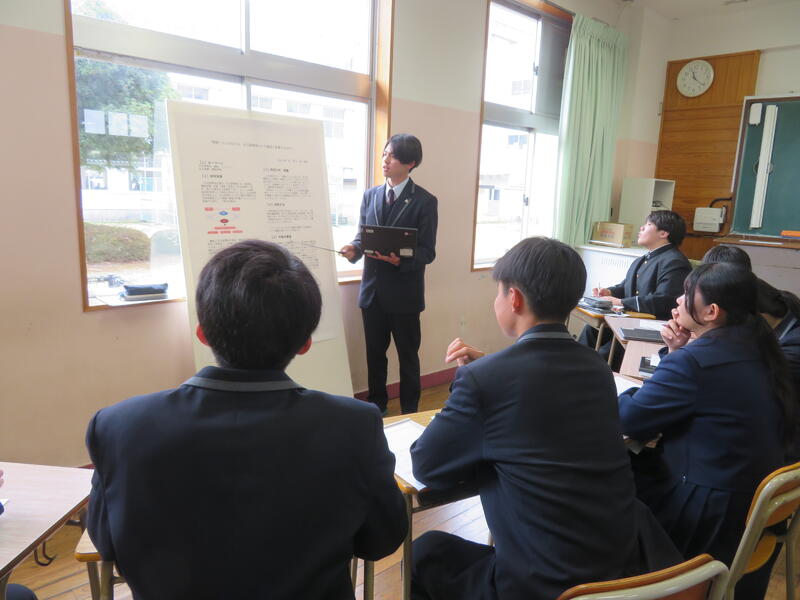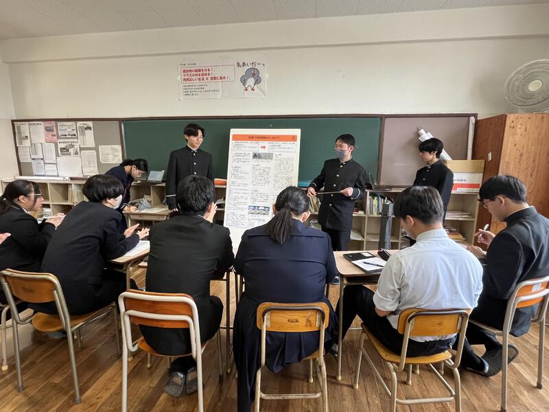 3学期から鹿本高校では、1つの共通したテーマをもとに、複数の教科でそのテーマに関連した内容の授業を行う「テーマクロス授業」に取り組んでいます。同じテーマについて各教科で学習することで、それぞれの教科の見方・考え方の関連を見出すことを目的としています。