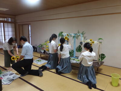 <華道>昨年の文化祭の生け込み