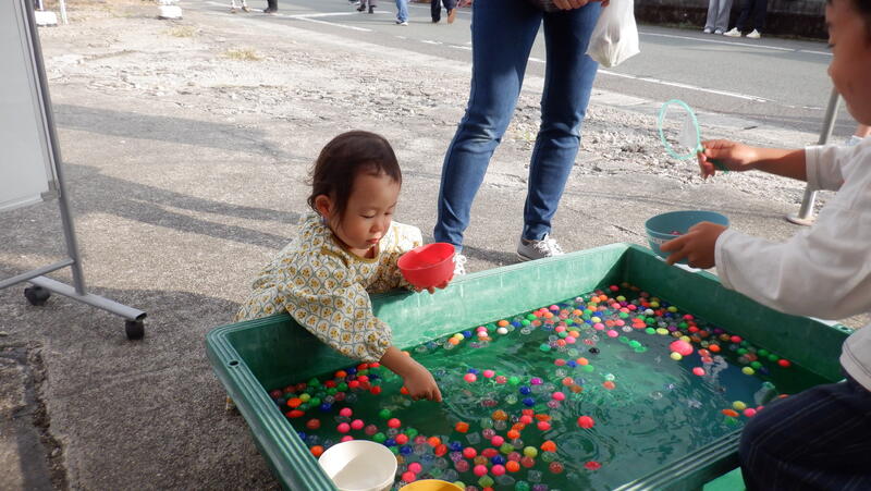 「スーパーボールすくい」は、小学生等が参加してくれました。大きいスーパーボールをとりたい!とチャレンジする子、着実にたくさんのボールをすくう子と様々でしたが、皆さんに楽しんでいただくことができました。