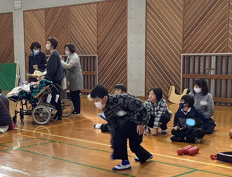 昨年度は鹿本中学校で行いましたが、今年度は本校小中学部校舎で行いました。開会式では、本校生徒が進行役をし、それぞれの学校紹介や自己紹介をしました。その後、グループ毎に「学校探検」として、本校マスコット「夢希ちゃん」カードを探し、メッセージを解読するというミッションに挑戦!それぞれのチームで相談しながら取り組む姿が見られました。最後は「ボッチャ」でグループ対抗戦をしました。「学校探検」ですっかり打ち解けた生徒たちは、投げる時に声援を送ったりジャックボールにチームの球が近づくと一緒に喜び合ったりしていました。閉会式では優勝チームの表彰もあり、開会式で少し緊張していた表情も和らぎ、笑顔いっぱいで交流できました。