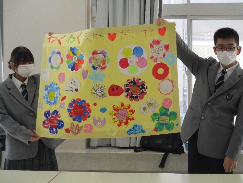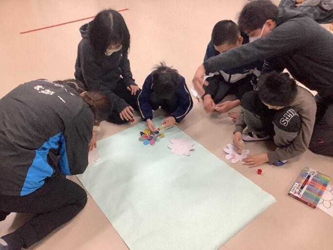 12月5日(金)に第7回「かもいなふれあいの日」を行いました。今回は「人権」について考える「人権集会」でした。小学部・中学部・高等部の児童生徒が、学部や学年を越えて共同作品の製作に取り組む活動を通して、自他を大切にする意識を高め、他者と協力する姿勢を育むとともに、人権に関する理解を深めたり人権感覚を磨いたりする機会とすることを目的としています。前半は、児童生徒会の進行で校長先生のお話を聞いたり、共同作品についての説明を聞いたりしました。後半は、各班に分かれて、事前に各自で作成した花を持ち寄り、小学部・中学部は自分の好きな色等を発表し、高等部は大切にしたい権利を伝え、みんなで大きな模造紙に貼り付けました。各班、素敵な人権の花畑が出来上がりました。