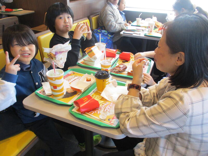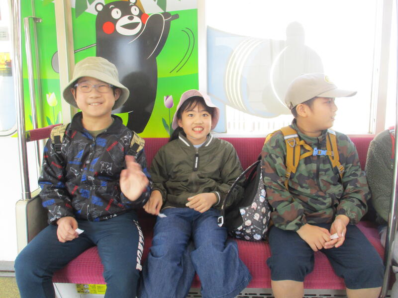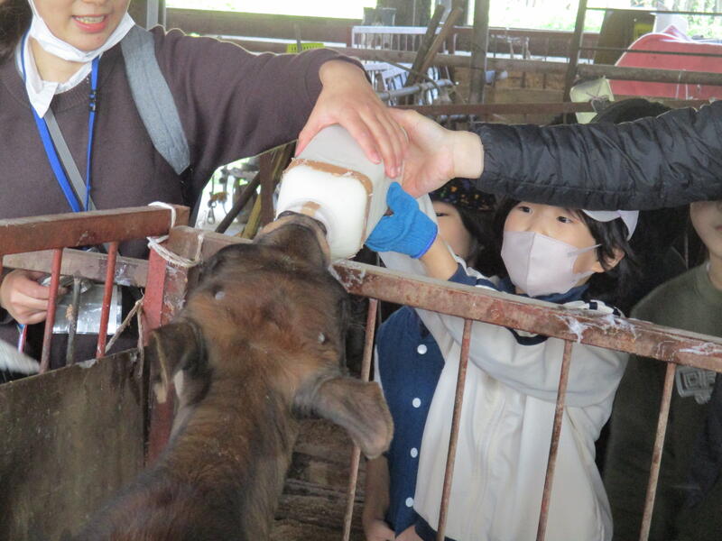 11月21日(金)校外学習に行ってきました。今回は初めて熊本電鉄を利用して目的地のオオヤブデイリーファームへ向かいました。電車では、少し緊張気味の子どもたちでしたが、事前学習で学んだ手順や乗り方の約束を守って乗車することができました。オオヤブデイリーファームでは、施設見学をしたり、ミルク飲ませ体験やブラッシングをしたりとても貴重な体験をすることができました。迫力のある大きい牛たちを間近で見ることができ、「おおきいね!」ととても驚いた表情の子どもたちでした。昼食はマクドナルドに行き、自分たちで注文・支払いをすることができました。たくさん歩いた分、一段と美味しく食べて楽しい時間を過ごすことができました。