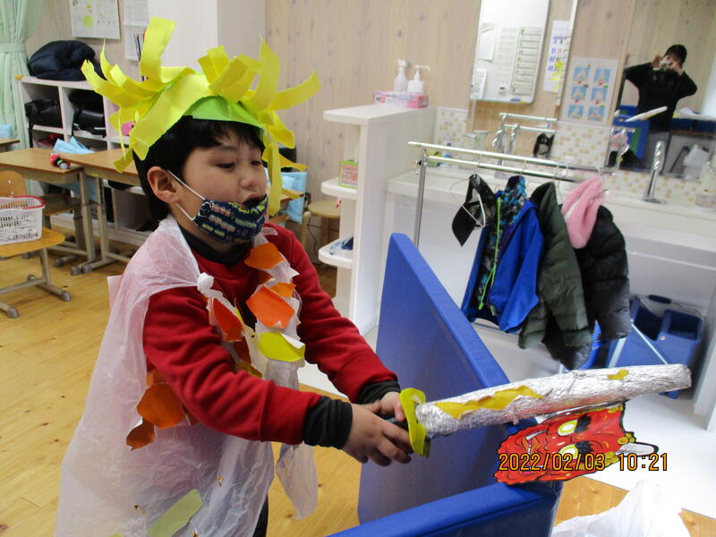 2月3日は節分と言うことで、小学部でも図画工作科で節分に関する制作活動を行いました。鬼を退治する役の衣装、鬼役の衣装を色画用紙やポリ袋などを使って作りました。児童それぞれかっこいい、かわいい、そして怖い鬼の衣装ができました。豆の代わりに折り紙や新聞紙を丸めて「おにはそと!ふくはうち!」と怖い鬼を退治できました。小学部のみんなが今年も元気に過ごせますように!