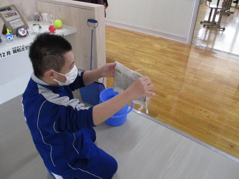 2月14日(月)~18日(金)の1週間、「クリーンチーム」「ピカピカチーム」に分かれ、校内外の清掃をしました。チームごとに目標確認や振り返りを行うことで、毎日少しずつ上達が見られました。道具の使い方も最初はぎこちなかったのですが、徐々にコツを覚え、後半には、竹ぼうき・熊手・スクイジー等を用途に応じて使い分けることもできるようになりました。家庭や地域でも役割を担っていってほしいと思います。
