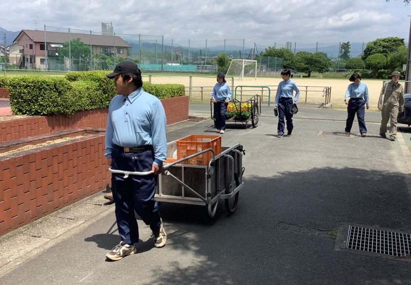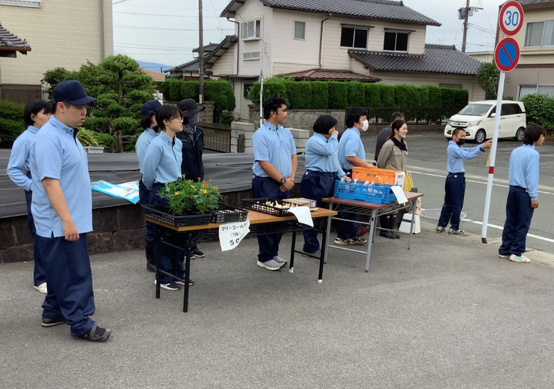 本校高等部農園芸班の生徒は、5月22日(木)に鹿本商工高校と本校正門前で、また5月29日(木)には本校正門前で販売会を行いました。