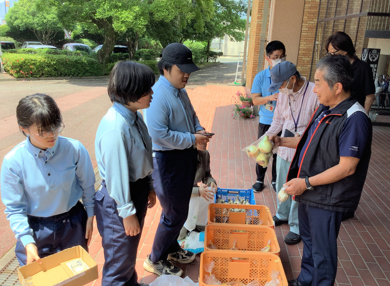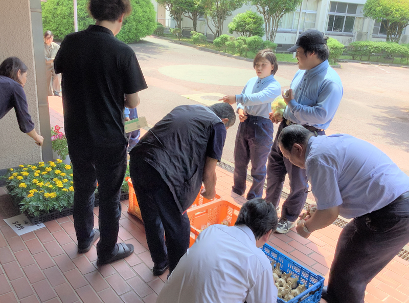販売したのは、心を込めて育てた“たまねぎ・にんにく・じゃがいも・マリーゴールドの花苗”です。この日のために、生徒たちは収穫・根切り・葉切り・袋詰め・値札づくりなど、事前の準備を協力しながら進めてきました。