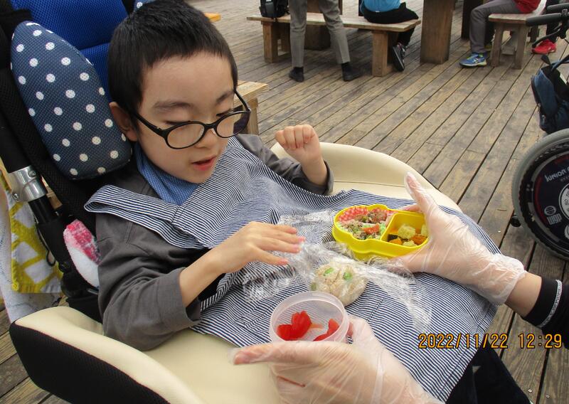 11月22日、小学1~3年生は、生活単元学習でバスに乗って道の駅鹿北へ行きました。道の駅鹿北では、木工体験でムービングフィッシュを作ったり、買い物学習をしたりしました。今まで何度か校外で学習した成果もあり、挨拶やマナー、買い物などスムーズに行うことができました。買い物では、初めてのセルフレジでしたが、落ち着いて飲み物を購入することができました。また、道の駅限定スタンプを、事前学習で作成したスタンプカードに押して素敵な記念にもなりました。