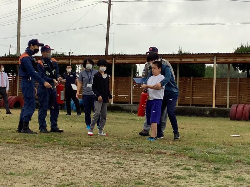 11月29日に火災避難訓練を行いました。当日は不安定な天候だったため、運動場横の渡り廊下に避難しました。大きな警告音や想定外の避難先に戸惑う児童生徒もいましたが、周りの友達や教師と一緒に安全に全員避難することができました。また、山鹿消防署東分署の方々に避難について講評をいただいたり、各学部の代表が消火訓練をしたりしました。訓練後には、消防車、救急車の見学もできました。訓練を通して、防災の意識や防災教育の大切さを改めて感じる等、貴重な経験ができました。