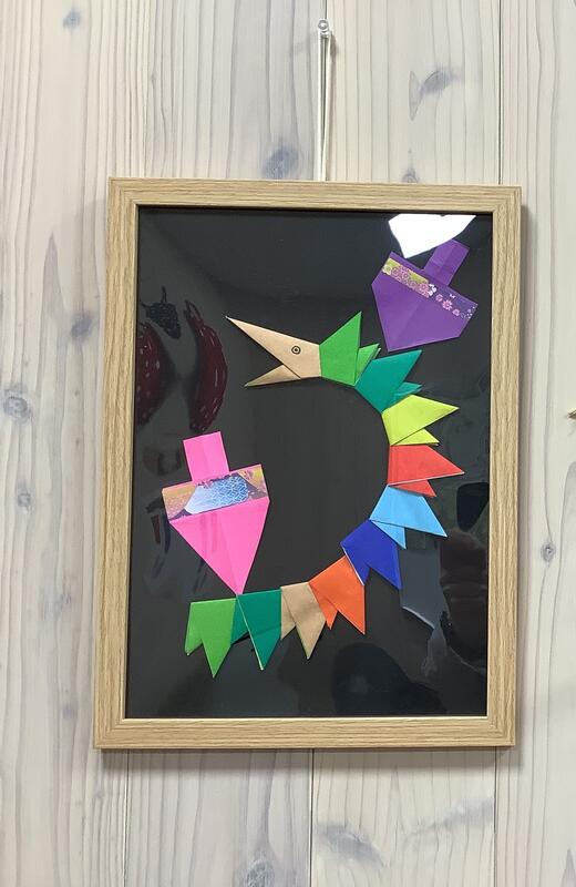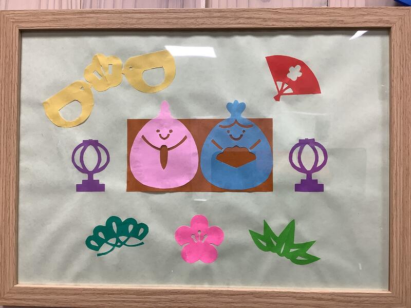 さて、校長室には、児童生徒の作業製品や子どもたちが放課後児童クラブで作った作品などを掲示していますが、今年は私も月ごとに作品をつくってみることにしました。1月は、昇り龍のように飛躍の年になるようにと願いを込めて、今年の干支である「辰(たつ)」を折り紙で作りました。2月は「おひなさま」を飾ろうと、切り絵を作りました。令和の「ジェンダーフリー」ひな飾りとして、お内裏様をピンク、お雛様をブルーの色紙で作っています。無心に手を動かしていると心が落ち着き、配色やレイアウトを考える時は心が躍ります。来月も、季節と学校、地域にちなんだものを考えてみたいと思います。
