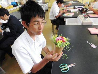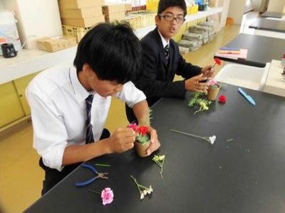 5月13日(月) 施設園芸科3年生フラワーアレンジメントの授業の様子です。 一日遅れましたが、カーネーションの造花を使って母の日の ギフト作成を行いました。 |