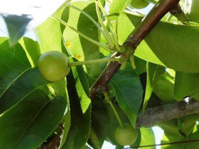 もったいないけど、綺麗な形で、より美味しい果実を収穫するた めに摘粒します。今回は、1つの花そうに1果残しました。 |