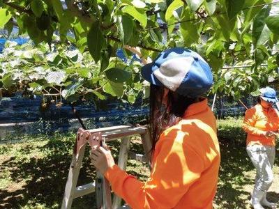 摘粒後の管理としては、袋かけをします。果実が色づくまで様々 な管理がされていきます。 美味しい果物を育てるのは大変ですが、日々の実習を頑張ってく れています。 |