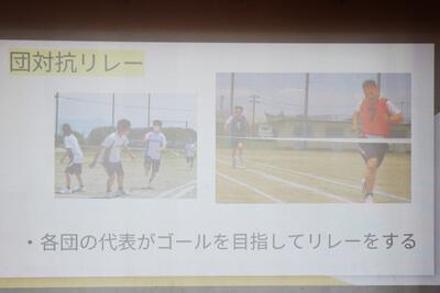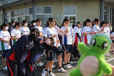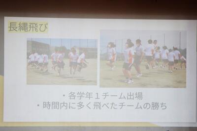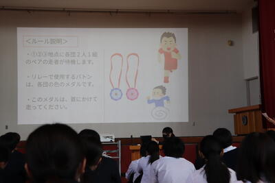 生徒会・家庭クラブ考案の種目名は「えっほ えっほ 先生も走るって伝えなきゃ♪」です。