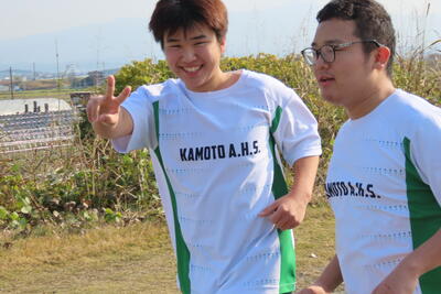 走りに向けて気合を入れる生徒、走る前でも笑顔な生徒