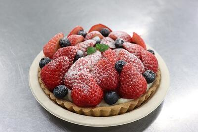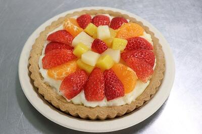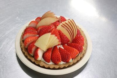 食品科学科3年生の高校最後の製菓実習はフルーツタルトを製造しましたタルト生地、カスタードクリームを作り、自分たちで好きなフルーツを持参し、デコレーションしました