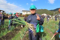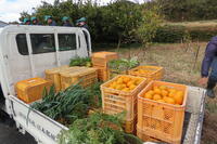 ネギやニンジンやキャベツやみかんを収穫して、農高より畑が広くて野菜も大きかった
