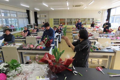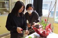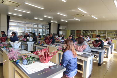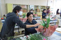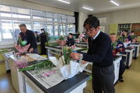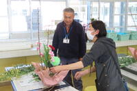 講師の先生に丁寧に教えていただきながら、本校の先生も一人一人の生徒に向き合うように一本一本の花と向き合われながらアレンジをされていました。
