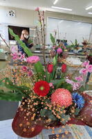 ジャパンフラワー強化プロジェクトで、鹿本町の花四季彩さんが先生方にフラワーアレンジメントを教えに来てくださいました。