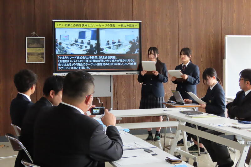今回は宮崎市の南九州大学とオンラインで研究に関するアドバイスを頂きました。商品開発や畜産加工学などが専門の教授から赤鶏や和栗の特徴を活かした商品開発の方法や試作を行っているソーセージについて改善策などを教えて頂きましたまた、赤鶏の成分分析の結果も詳しく説明して頂き、今後の研究材料として活用したいと思います!