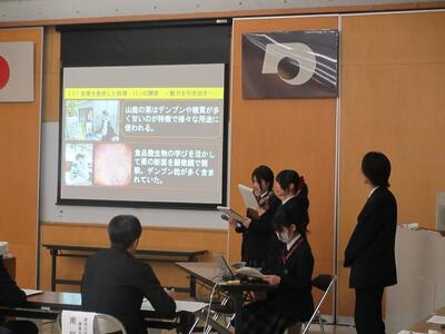 そんな中、代表として食品加工部の生徒がプロジェクト研究を紹介しました。