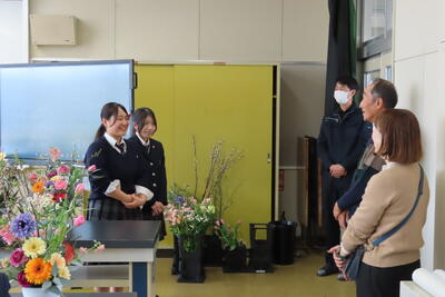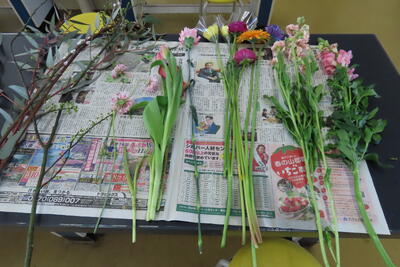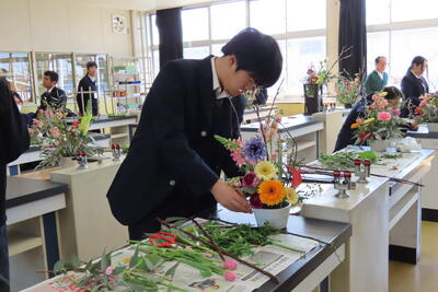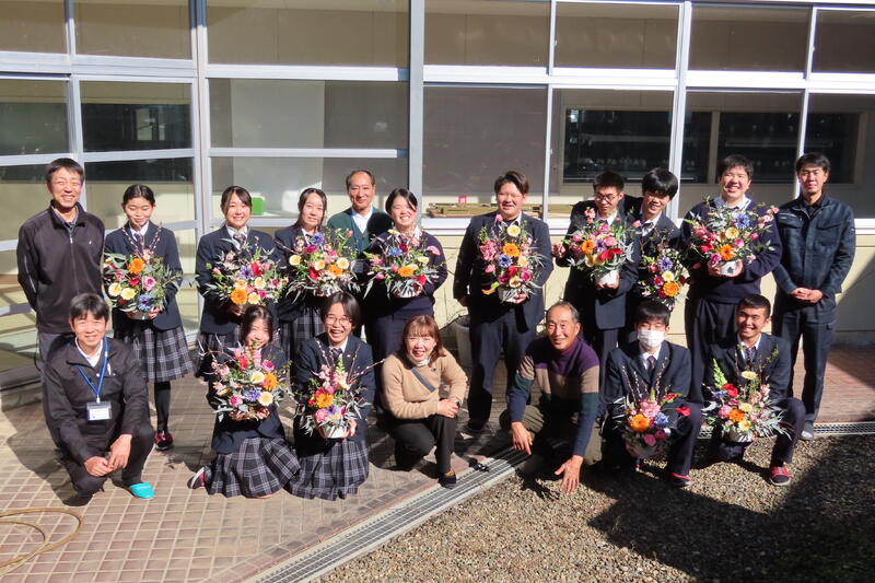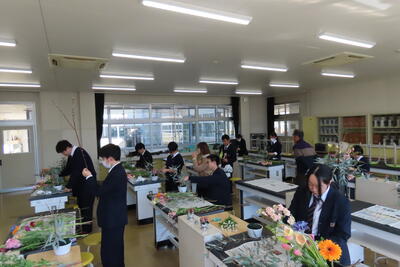 園芸技術科と生活デザイン科の「生物活用」の授業で、「春のアレンジメント」を作成しました