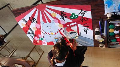 今年はイラスト同好会の2年生が中心となって「子」の絵馬を