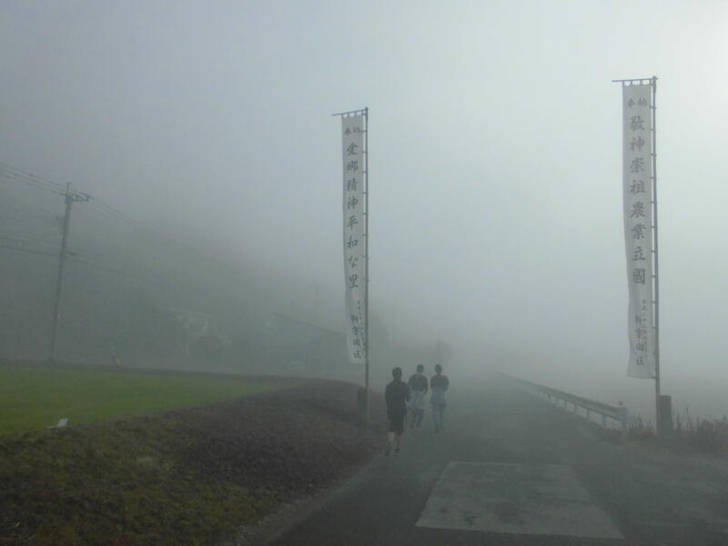 走り始めは、あたり一面真っ白すごい霧がかかっていました