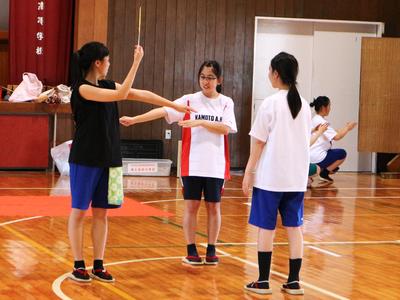 郷土芸能伝承部は、今年もたくさんのイベントに呼んでいただいています。 イベント毎にステージの広さや持ち時間が違うため、その都度隊形や演技の構成を変えないといけません。今日はじっくりと時間をかけて、次の公演に向けた隊形作りと演技の構成を行いました。 |