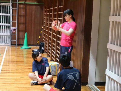 残り4人は競技としてのバドミントンは初めてということで、フットワークや基礎打ち(クリアー・ドライブ・スマッシュ)に取り組んでいます。