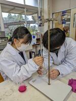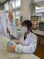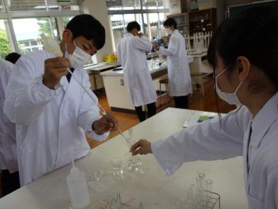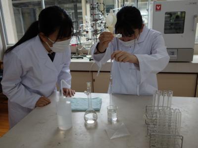 1年食品科学科「食品化学」の授業で薬品の調製方法について学びました