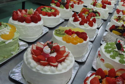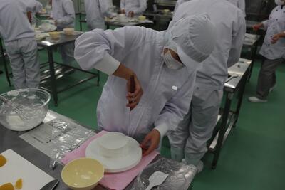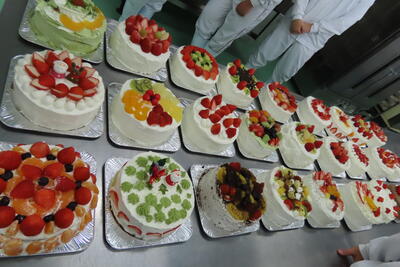 前もって焼いていたスポンジを使い、1年生は22日(水)3年生は23日(木)、そして2年生はクリスマスイブの24日(金)にデコレーション実習がありました。