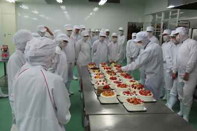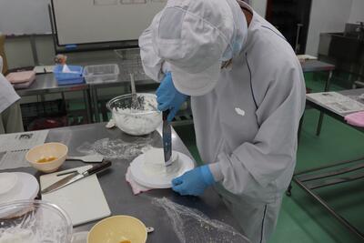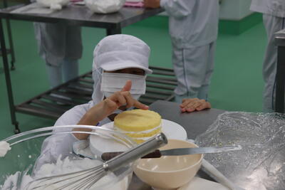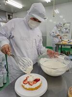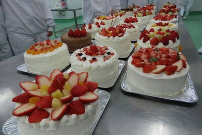 「食科(しょっか)」(3年食品工業科、1・2年食品科学科)この時季恒例のクリスマスケーキ実習