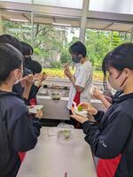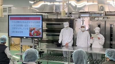 今年度は新型コロナウイルス感染症予防のため、その場での試食会は行わず、製品についての発表と個包装した製品の配布を行いました。