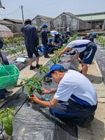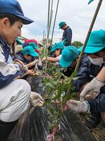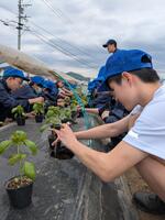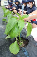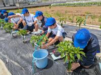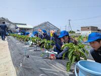 1年食品科学科「農業と環境」の授業がスタートです!!今回はピーマンの定植を行いました