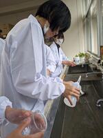 初めてとなる今日は実験器具の使い方や洗浄方法を学びます。